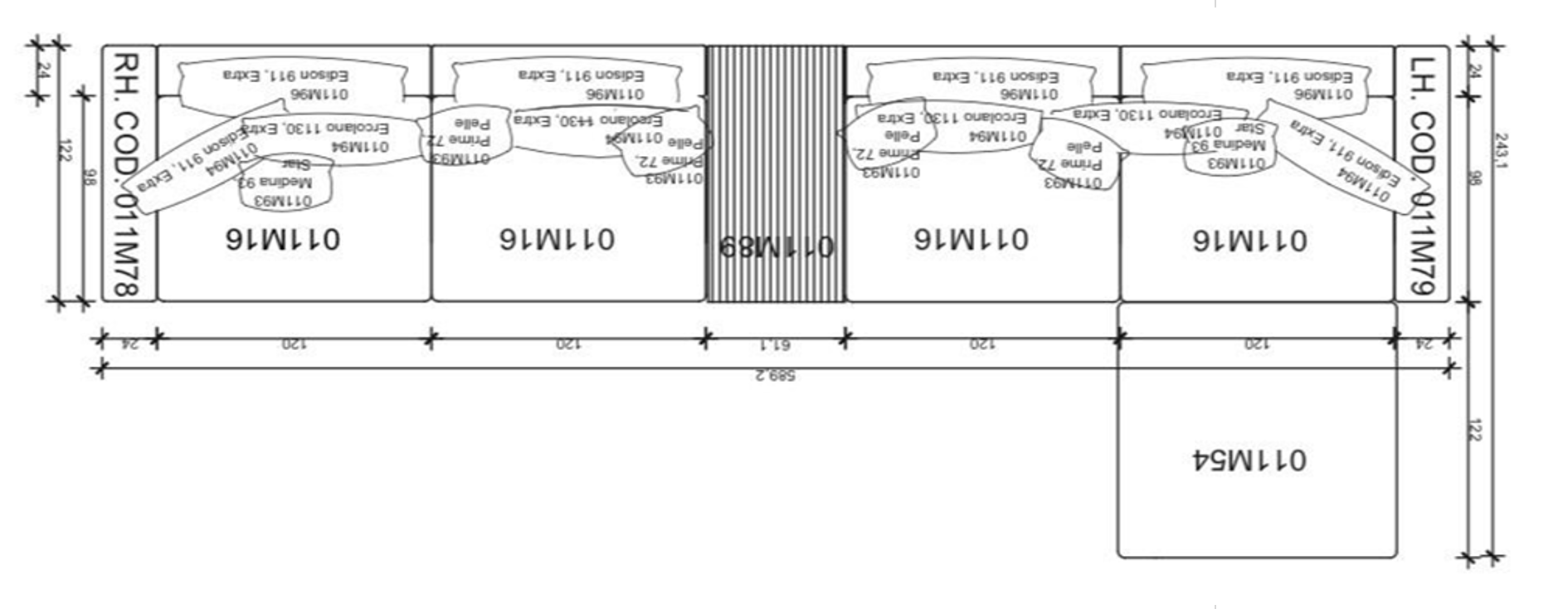 1x osnovni modul brez rokonaslona, dimenzije 120×122cm
