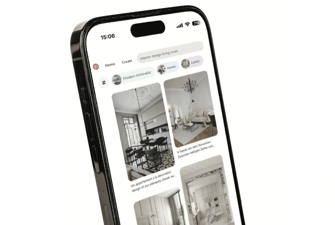Za jasno komuniciranje stila notranjega dizajna, ki vam je všeč, pa najboljše služijo slike. Ena izmed najbolj priljubljenih platform za iskanje navdiha je Pinterest, kjer si lahko oblikujete kolaže s primeri dizajna. Pinterestov algoritem je izjemno dober v prepoznavanju tega, kar vam je všeč, tako da vam kmalu začne tudi sam predlagati še več primerov in poskrbi za dodaten navdih.