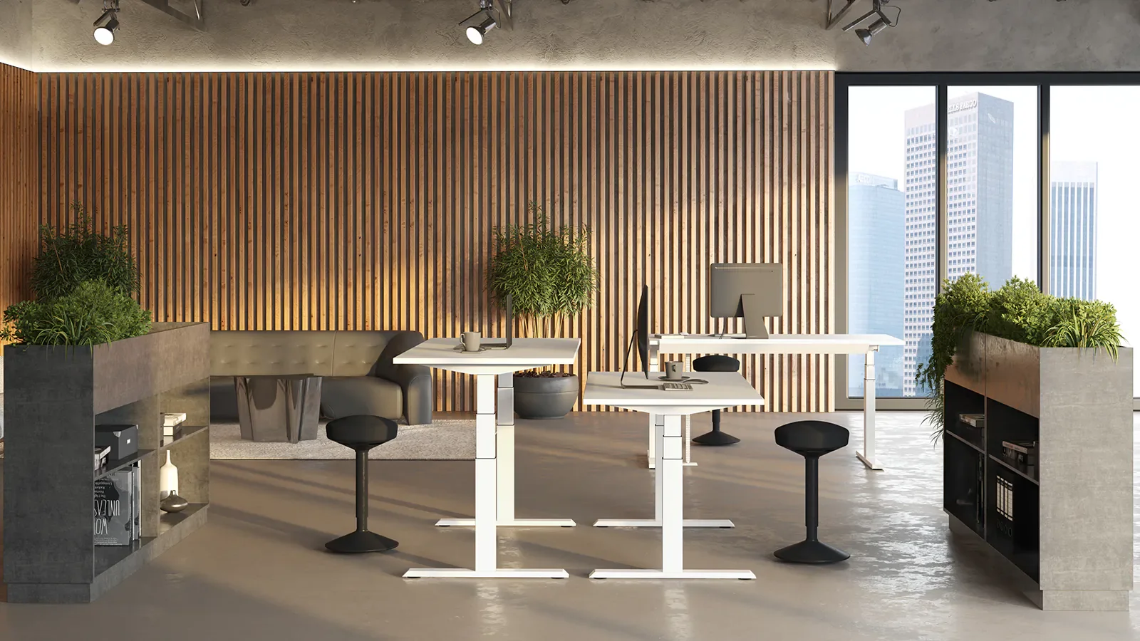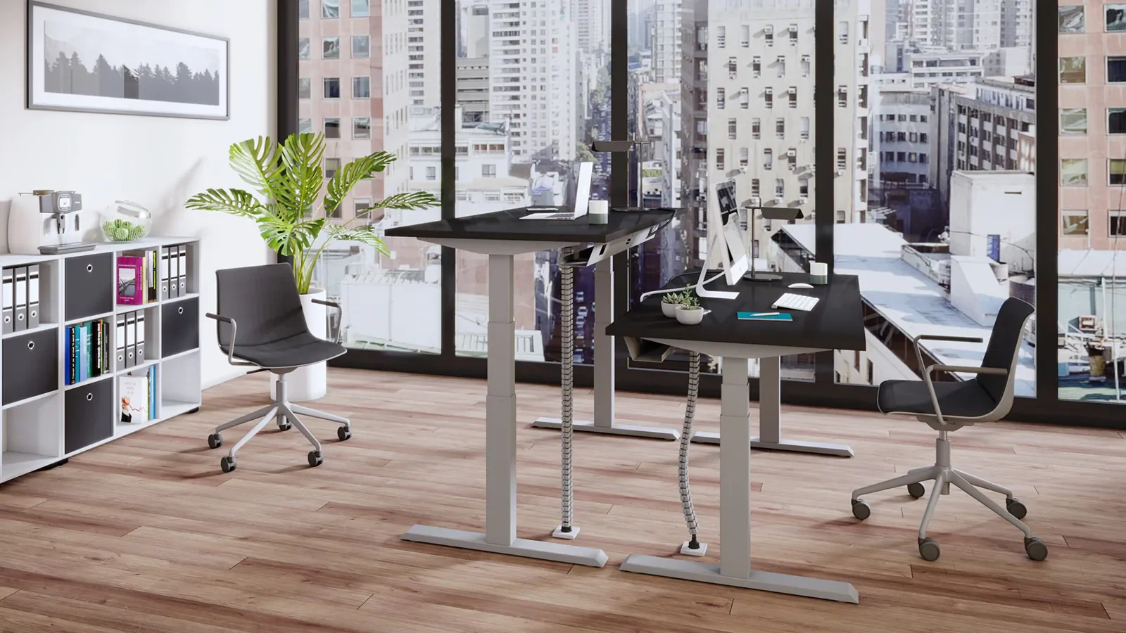 Ponudba vključuje električne in mehanske okvirje, delovne mize ter dodatke, kot so upravljalne enote, kabelski sistemi in organizacija delovne površine. Rešitve so zasnovane modularno, zato jih je mogoče prilagoditi različnim projektom – od klasičnih pisarn do industrijskih in home office okolij.